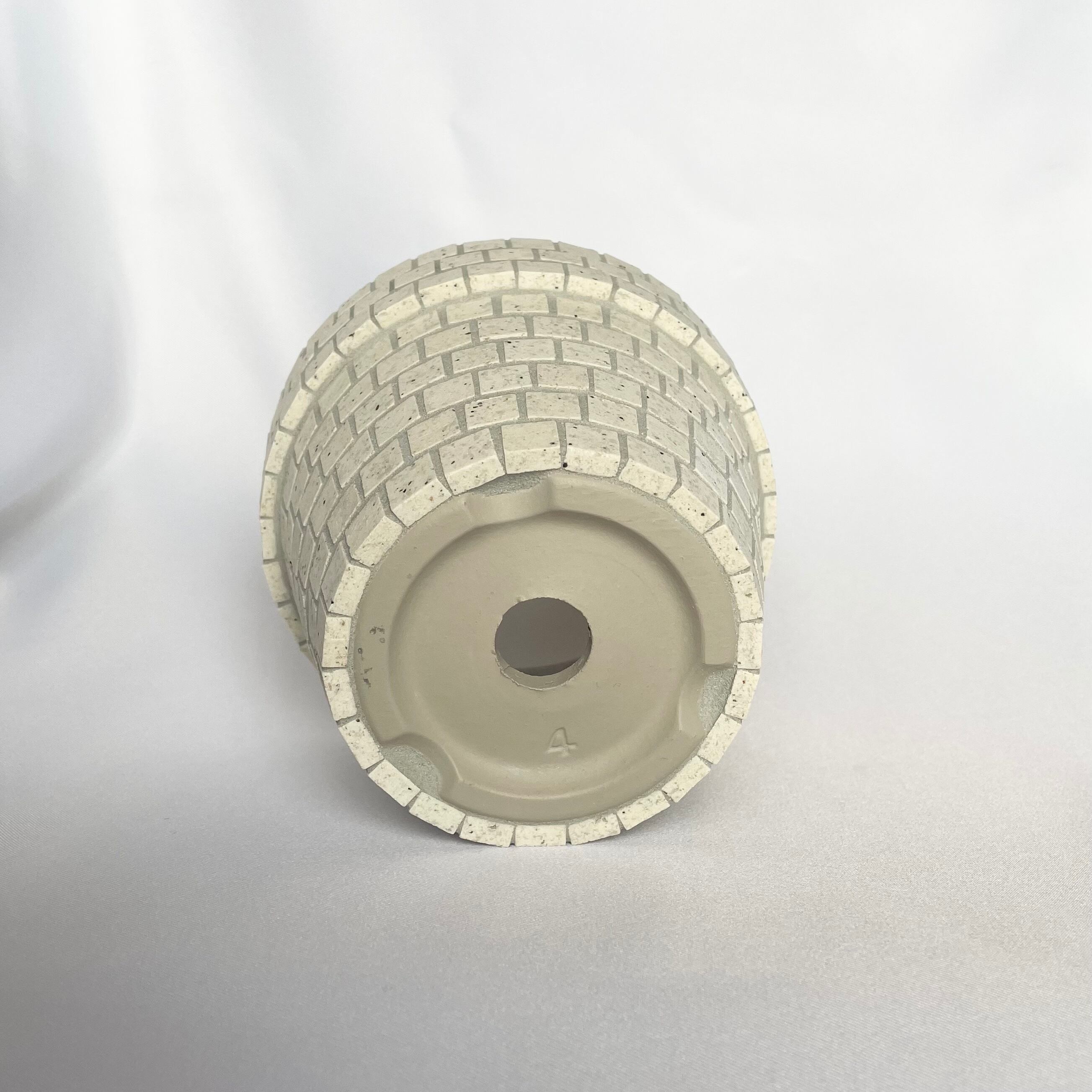 素焼きの植木鉢にサンドカラーで色付けをし、10㎜角のモザイクタイルを貼り付けました。