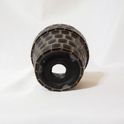素焼きの植木鉢にアイアンブラックで色付けをし、10㎜角のモザイクタイルを貼り付けました。